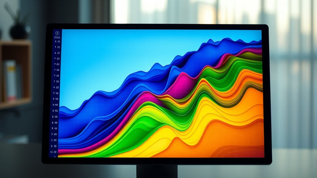 Imagine you’re in a time machine, and creating ridge plots, a common pitfall is neglecting color gradients, which can obscure data differences. You also risk misrepresenting data with improper axis adjustments, making comparisons misleading. To avoid these pitfalls, guarantee your color gradients clearly distinguish distributions, and adjust axes thoughtfully. This way, your ridge plot remains clear, accurate, and visually compelling, helping viewers easily interpret the data trends.
