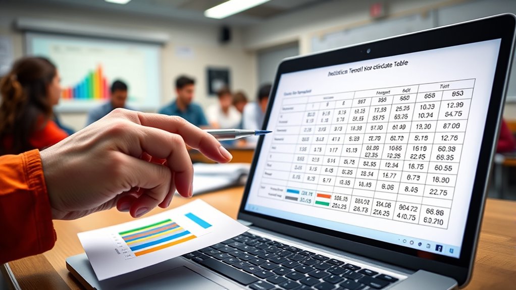 When applying chi-square tests, it’s essential to guarantee that certain assumptions are met; otherwise, your results may not be valid. First, ensure your observations are independent and data is randomly sampled to avoid biases. You should check that no cells have expected frequencies of zero and that at least 80% of the cells have expected counts of five or more for accurate results. Remember, chi-square tests are suitable for categorical data, so your variables must be properly classified. Set an appropriate alpha level, like 0.05, to control the risk of Type I error. Also, verify data quality by checking for errors before proceeding. Additionally, understanding digital literacy programs can help ensure data collection methods incorporate modern communication tools, which can affect data accuracy. Ensuring attention to detail during data entry and analysis is crucial to maintain the integrity of your results. Meeting these assumptions ensures your test’s validity and reliable interpretation of the possible association between variables.